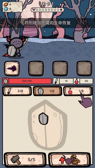 装备系统深度影响战斗维度:武器直接提升攻击力,盾牌增加最大生命值,药剂强化生命恢复效率——三者协同,构筑可定制化生存策略。随着恶魔等级提升,不仅基础属性增长,更将解锁专属主动技能,配合已掌握的技能树,形成多段连招与战术应对空间。