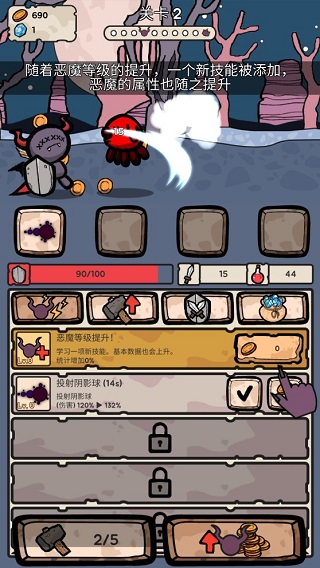 升级路径清晰直观:通过消耗合成所得材料,点击即可提升恶魔等级;每次突破都将激活新能力节点,并开放更高阶物品合成权限,驱动玩家持续探索成长边界。