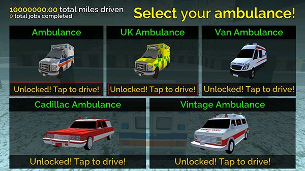 2、本版本已预解锁全部救护车车型,无需等待、不限次数,自由选择心仪座驾投入任务;