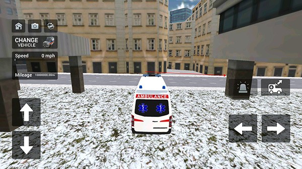 3、进入驾驶视角后,通过虚拟按键精准控制方向、加速、刹车与鸣笛,真实还原救护车操控逻辑;