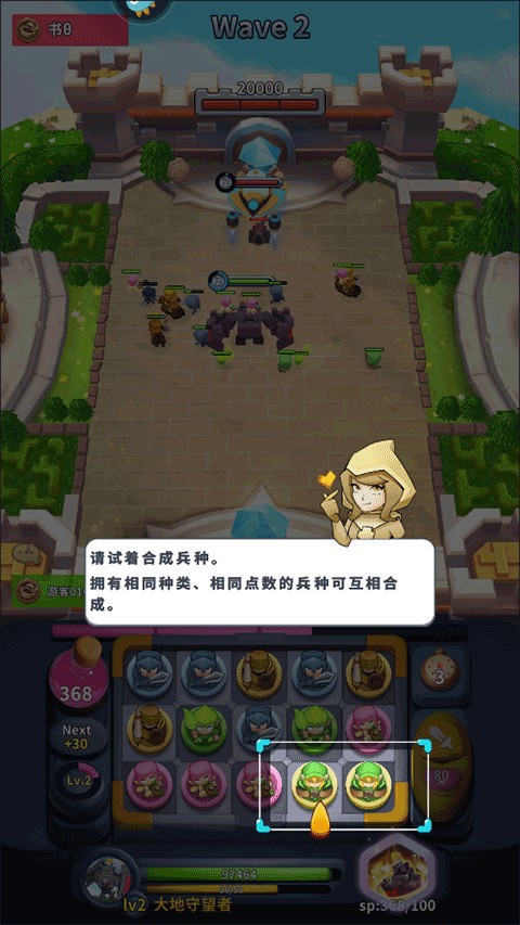 战斗中,长按同类型守卫并拖至另一名同类单位上——完成合成!高阶英雄不仅伤害倍增,更解锁范围溅射、减速光环等强力特效: