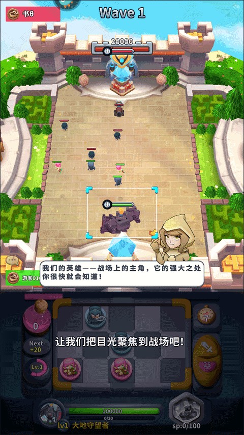 点击召唤区域,选择待出击的守卫单位(每位英雄拥有独特攻击方式与范围):