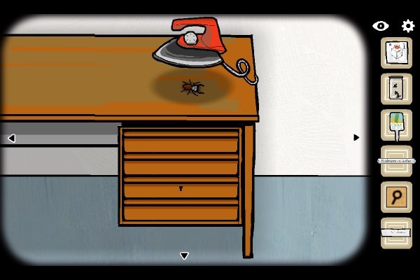 10、拨开女尸面部遮挡的发丝,点击其嘴唇,甲虫爬出;跟随甲虫至桌面,拾起熨斗将其拍扁;点击虫尸,拾取第三把钥匙。