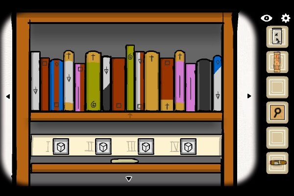 6、打开书架底层套娃,依外层图案顺序将对应小物逐一嵌入,最终获得首把钥匙。