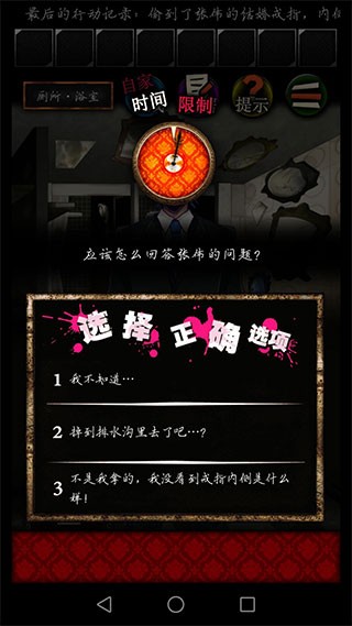 生存抉择:每一次对话选项都暗藏生死门槛。“掉进排水沟”是安全谎言,“戒指内侧”则直指真相——选错三次将触发隐秘结局,而唯一通关路径,永远藏在你敢于质疑的勇气里。