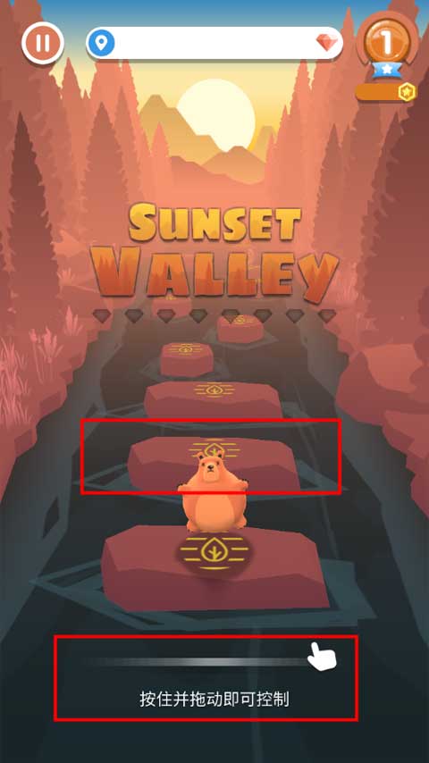 进入游戏后,首先进入已解锁的初始场景“Sunset”(日落海滩),轻点即可开始。玩家只需按住屏幕并左右拖动,即可精准控制小熊的移动方向;持续按压则维持连续跳跃节奏,让角色在跳床间轻盈腾跃、稳稳落地——操作极简,但节奏感与反应力缺一不可。