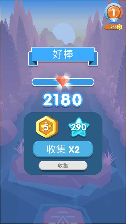 每完成一段关卡,你将收获闪耀水晶、蓝色星星及稀有徽章;通关后点击界面下方宝箱图标,即可开启奖励,累积硬币资源。