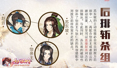 苏东坡主动技必选敌方后排单位,配合怡亲王或赵云的被动斩杀效果,可实现“一击清后排”;同时其被动伤害有效弥补传统阵容对前排攻坚乏力的短板。