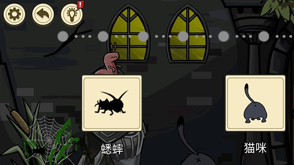 从垃圾桶启程,借树枝制造落点;精准触发红/蓝/黄/白四色按钮激活神经反射机制;最终跃上小猫背部,利用其体重压开密闭舱门——所有操作皆模拟虫类对宿主行为的操控逻辑。