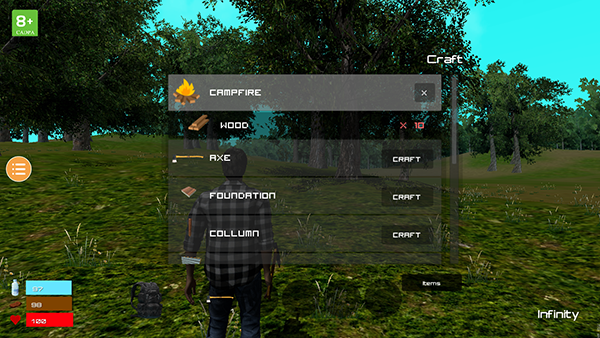 3、初始仅配备一把斧头与基础背包,资源全靠双手积累;