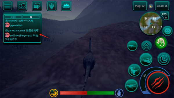 ? 动态食物链系统:肉食龙通过PvP击杀获取血肉补给;草食龙需辨识地图中分布的特有蕨类、苏铁与水源;所有恐龙均需警惕环境饥饿、脱水与体力衰竭状态。