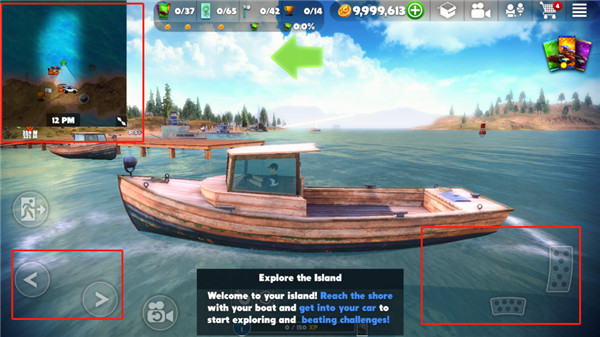 打开游戏→选择初始场景→登上默认船只→左手控向、右手油门/刹车→点击绿色图标切换第一人称视角→沿蓝色导航标驶向岸边→登车即刻启程!