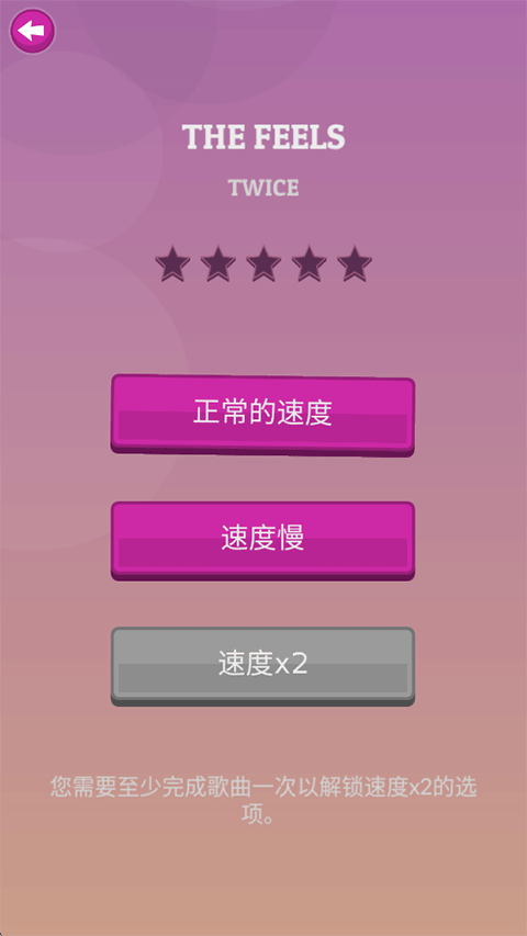 4、选定曲目后返回主菜单,点击“开始游戏”,三档速度任选:初学推荐“速度慢”,进阶挑战“正常速度”,高手冲刺“2倍速”;