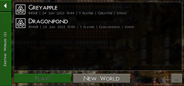 2. 在存档页右下角点击【New World】新建世界,自定义地图参数(难度、生物群系、天气等);