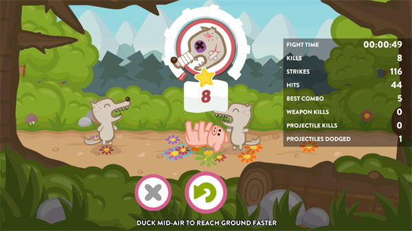《功夫小猪》是一款节奏迅猛、风格狂野的2D格斗手游:你将化身身手矫健的忍者小猪,在森林密境与都市街头两大竞技场中,单枪匹马迎战成群暴怒的狼族军团!滑动操控闪避、点击释放重击、拾取武器反杀——火箭呼啸、破坏球横冲、斧头破空而来,每一场战斗都是对反应速度与操作精度的极限考验。电影级动作演出、行云流水的连招系统、幽默热血的角色设定,搭配成就解锁、技能成长与实时战斗数据统计,让这款看似搞怪的小猪格斗,实则暗藏硬核动作魅力与无限重玩价值。