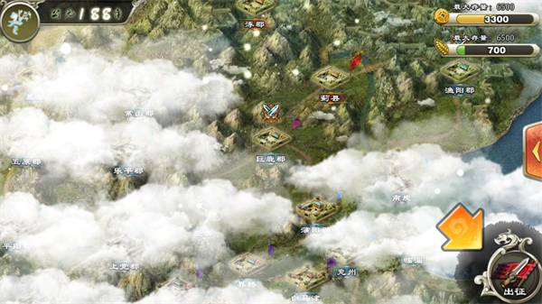 点击世界地图,锁定周边低防郡城(如蓟县),以“侦查→试探→强攻”三步法稳步推进;首战建议携带1–2名橙将+满编步兵,高效刷取经验、木材、铁矿与初级装备图纸。