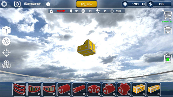 《沙盒汽车工艺模拟器》不是普通沙盒游戏——它把“造物主”权限直接交到你手上:从零开始设计、组装、调试一辆完全属于你的方形赛车,再驾驶它冲进开放世界,与AI或真人对手展开高速对抗!简约硬核的像素画风下,是深度物理引擎支撑的真实车辆逻辑——重量分配影响加速、轮组数量决定动力输出、装甲厚度关系生存能力。没有固定关卡,没有预设蓝图,只有一片待征服的广袤地图、一个无限扩容的方块零件库(轮子/炮塔/火箭发动机/机枪/装甲……),以及随时可开启的联机对战模式——叫上好友,一起造车、飙车、炸车,把创意变成硝烟弥漫的胜利。