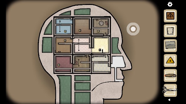 24、抵达有水房间,启动潜艇潜入红色房间;拉开红色帷幕,点击相框退出;将房间拖至鼻腔位置,再次进入完成最终逃脱