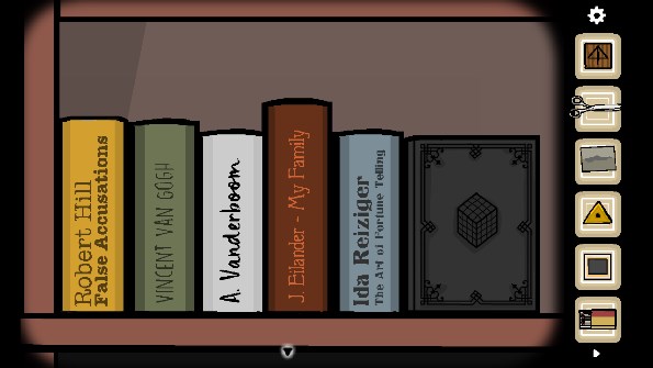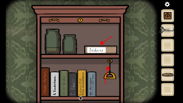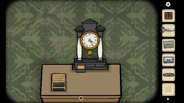 13、连续点击钥匙孔两次,显现一只眼睛;根据眼内图案方位,将时钟调至12:45,开启暗格取得「三角形钥匙」;用其打开右侧抽屉,获得「胶片2」与「手帕」;左侧抽屉内含书架摆放提示及一份关键「文件」