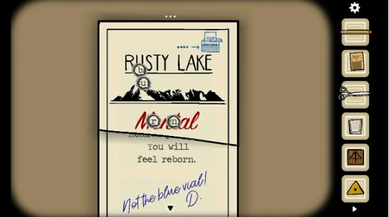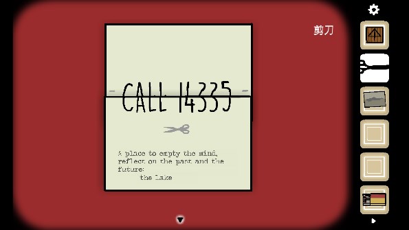 12、在打字机输入「the lake」得纸,用「剪刀」裁开;移动纸张使其叠加,浮现数字「14335」;拨号输入后,电话提示“请查看钥匙孔”