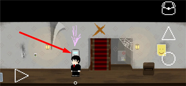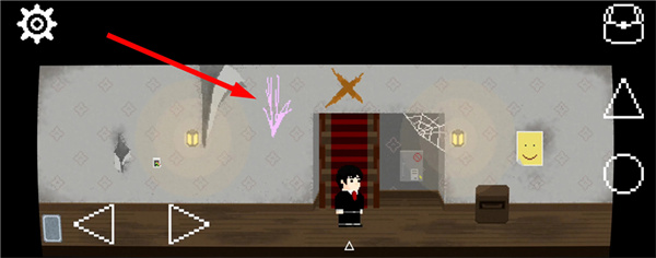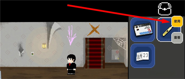 15、站定箭头处,使用美工刀刮开墙纸,露出隐藏【保险箱】。