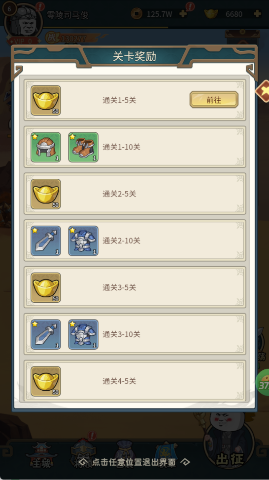 每通过一个主线关卡,立即解锁元宝、橙装、武将碎片等对应奖励,边闯关边囤货,进度与资源双丰收。