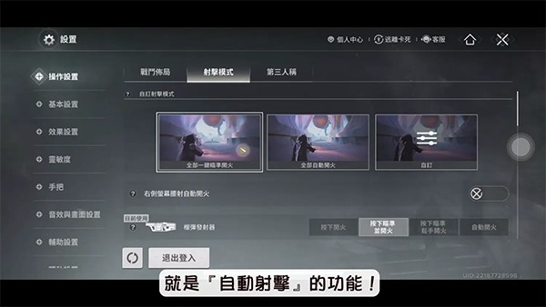 六、手机玩家专属优化:自动射击功能 为提升移动端体验,游戏内置“自动开火”模式。进入【设置→操作设置→射击模式】选择“全部自动开火”,只需将准心对准敌人即可自动攻击,大幅提升操作流畅度。注意:该功能仅限手机端生效,模拟器仅支持自动开镜。