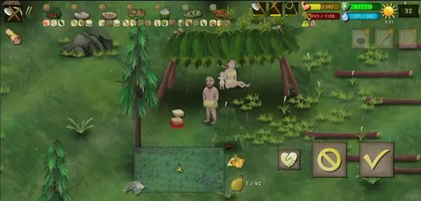 - **饥饿度**:人体极限仅7-10天,需持续摄入食物维持能量。 - **水分**:比食物更关键,可通过接雨水、椰子或过滤海水补充。 - **体力**:上限由饥饿与水分总和决定,不足则无法使用工具,睡觉可快速恢复。 - **健康值**:淋雨、夜宿野外或被动物攻击会降低健康,均衡饮食与烹饪可提升。