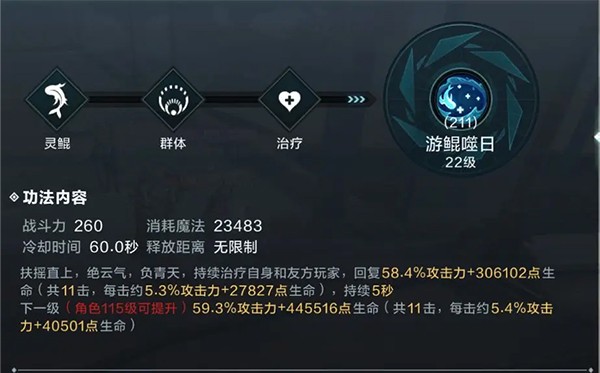 周常/高难副本(如风神之眼、三首神山等):推荐使用【游鲲噬日(211)+鲲祐四方(221)】。高难副本限制死亡次数,生存优先于输出。游鲲噬日可在残血时瞬间回满生命并恢复攻击力,兼具治疗与增伤;鲲祐四方则大幅提升生命上限与伤害减免。建议将鲲祐四方置于技能1位,游鲲噬日置于技能2位,确保关键时刻及时触发保命机制。