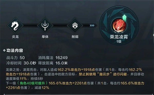 家族活动与野外PVP:推荐绝学为【灵鲲化劫(222)+乘龙凌霄(121)】。PVP环境中,控制与反控至关重要。灵鲲化劫提供高额防御加成并免疫所有控制效果,免疫时长随技能等级提升;乘龙凌霄不仅造成可观伤害,还能禁用对手的“踏云步”位移技能,有效限制敌人走位,创造追击与收割机会。