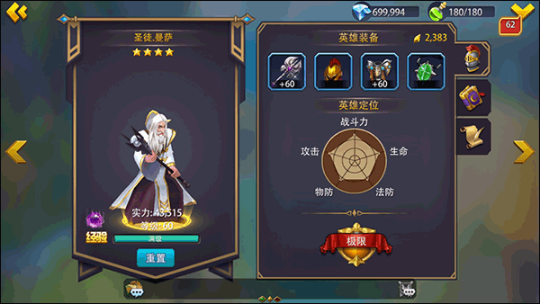 关卡奖励极为关键:普通难度产出英雄装备、升级材料、图纸及加速道具;精英难度则掉落英雄碎片。前期务必全力推进关卡进度,为英雄成长积累资源。切记及时为英雄装配装备并持续强化,因为英雄的战斗力主要来源于等级、进阶与装备三重维度。