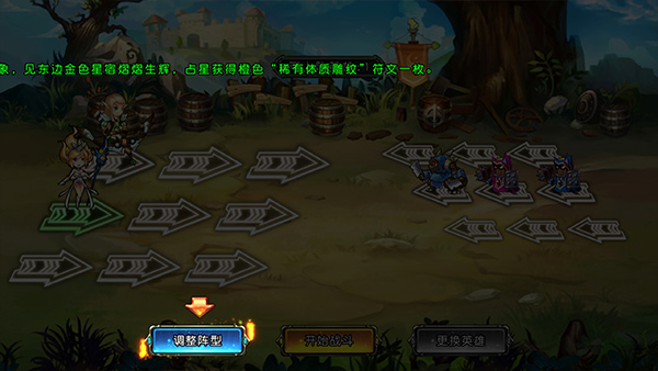 4. 战前务必调整阵型——例如将高输出的游侠置于前排以最大化先手优势,再点击“开始战斗”。