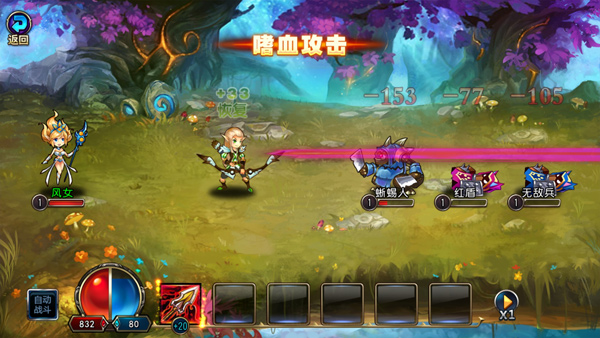5. 战斗中,轮到己方回合时,点击下方状态栏释放技能;蓝量充足时可直接发动强力技能扭转战局。