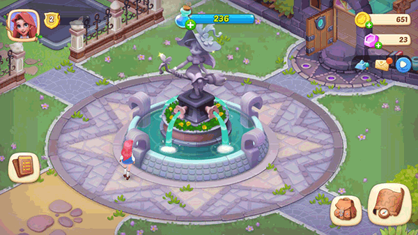 5. 清理喷泉上的藤蔓,恢复其原有功能。