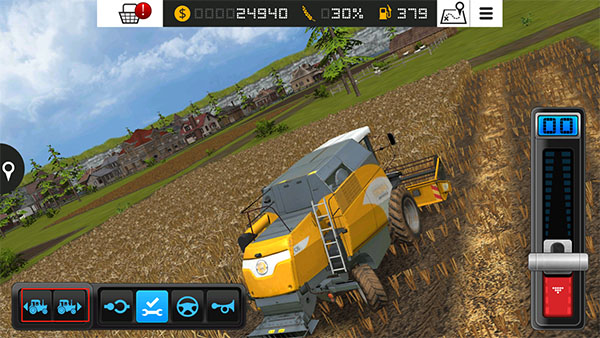 进入游戏后,点击屏幕即可开始。首先选择游戏模式——是开启全新挑战,还是继续之前的存档?接着设定难度等级,从轻松体验到硬核经营,满足不同玩家需求。操作方面,右侧虚拟摇杆控制车辆前进,部分农机还支持自动驾驶功能,大幅提升作业效率。此外,游戏中提供多种载具任你切换,从经典拖拉机到专业收割机,每一种都带来独特的驾驶体验。