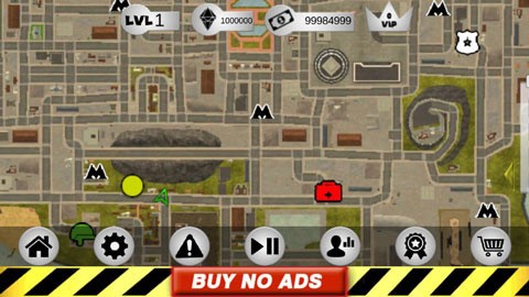 游戏采用直观的虚拟按键布局:左侧控制移动与加速,右侧负责绳索发射、攻击与跳跃,右上角可切换武器并实时查看血量与经验条。在城市中与其他帮派交火时,击杀敌人可获得经验并积累星级;但需注意,高星级会引来警察及其他NPC的集中围攻,如何在混战中生存并完成目标,是每位英雄必须面对的挑战。