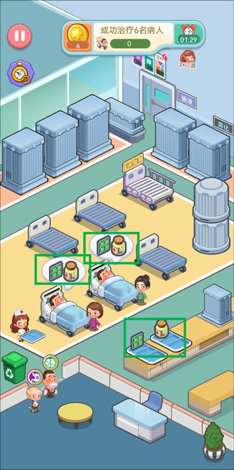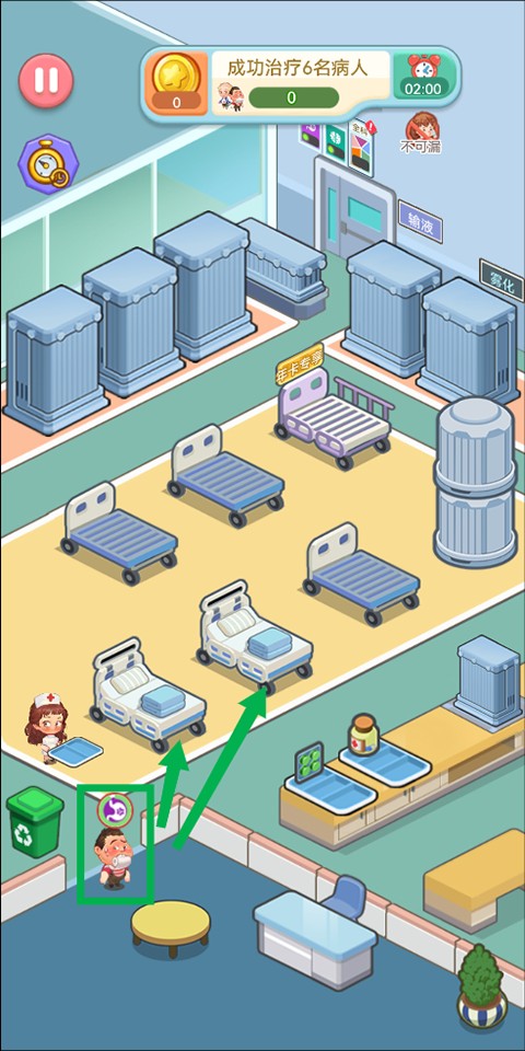 当病人抵达医院,只需将他们拖拽至空闲病床,即可开始诊疗流程。操作直观,节奏明快,新手也能快速掌握核心玩法。