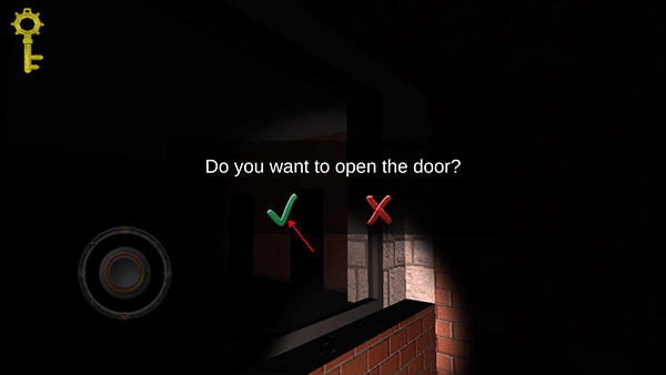 进入游戏后,点击“Play”即可开启冒险。你将置身于一个伸手不见五指的漆黑房间,仅靠手中手电筒照亮前路。靠近房门时,系统会提示是否开门——选择“是”,你将踏入下一个未知空间。请注意,途中可能遭遇突如其来的“跳脸杀”惊吓,务必时刻保持警觉,随时准备应对突发状况。