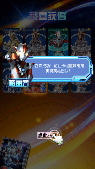 进入奥特曼抽卡游戏王后,只需几步即可开启你的光之征程:点击“开始”进入游戏,跟随新手引导点击屏幕空白处继续流程;随后进入抽卡界面,选择“胜利包”并点击“立即召唤”,系统将为你撕开卡包、加载全新卡牌。你可能抽到普通奥特曼、强力怪兽,甚至稀有的SR级高战力卡牌。抽卡完成后,关闭页面,前往“我的卡册”管理收藏,并通过“替换上阵”功能组建你的主力队伍,最终踏上拯救地球的冒险之旅。