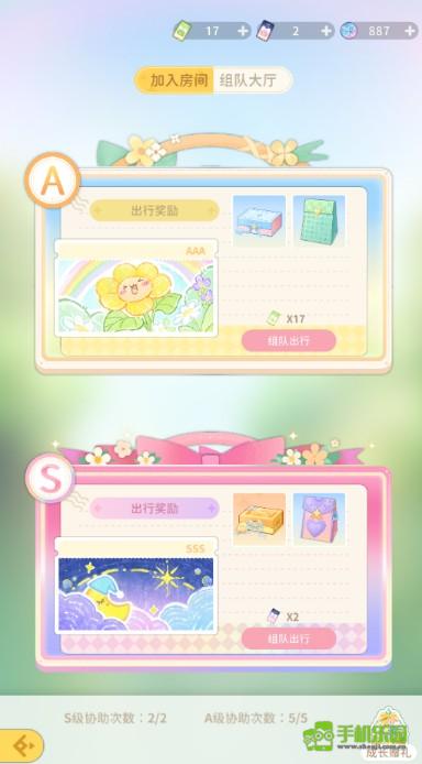 出行分为A级与S级两种难度:A级出行可获得三星小小樱碎片及普通好感度道具;S级出行则产出五星小小樱碎片与高级好感度道具,助力角色快速成长。