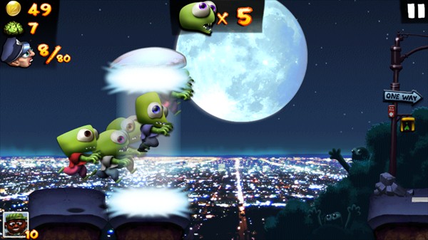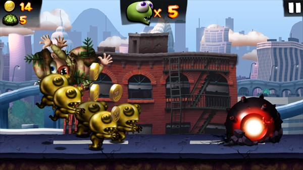 忍者僵尸:挥刀斩断一切障碍,包括爆炸物。操作简单,仅需控制跳跃即可发挥最大威力。