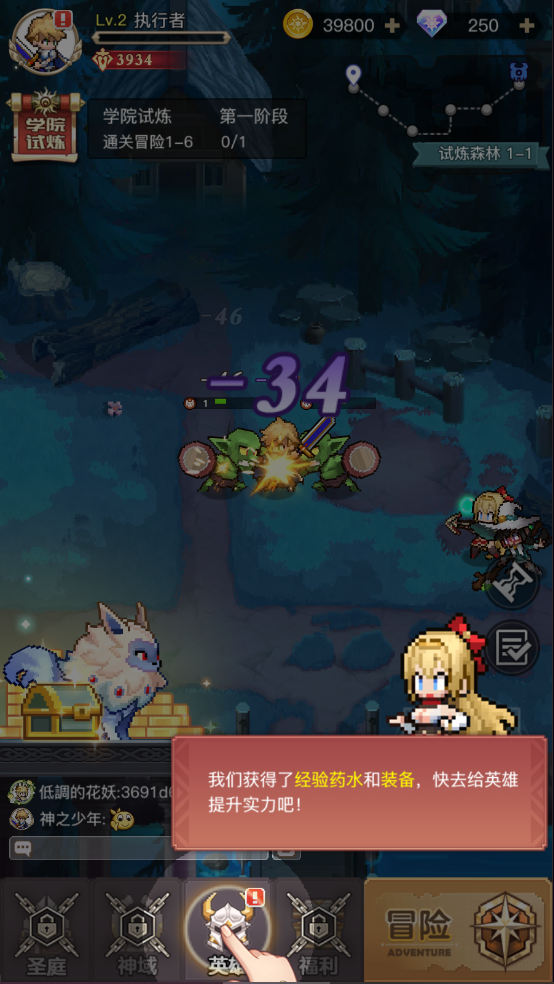 完成升级后,点击右下角“冒险”按钮进入关卡地图。在战斗场景中,你需要操控角色击败所有敌人,成功通关后即可推进剧情并获取丰厚奖励。