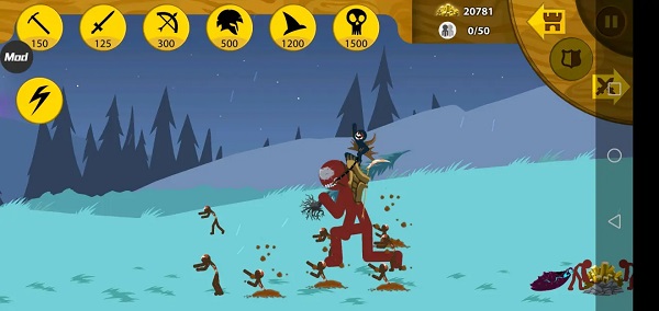 无论进攻或防守,都应保持兵种搭配的合理性:前排部署近战单位(如 Swordwrath、Spearton)吸收伤害并近身输出,后排配置远程单位(如 Archidon)进行安全火力压制。这种经典“肉盾+输出”组合能最大化战斗效率,减少不必要的损耗。