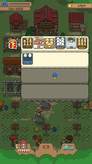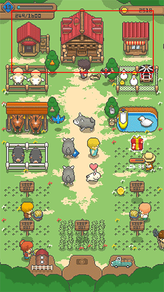 - 右侧建筑:用于销售动物产出物,达到指定等级后可花费金币扩展货架数量。