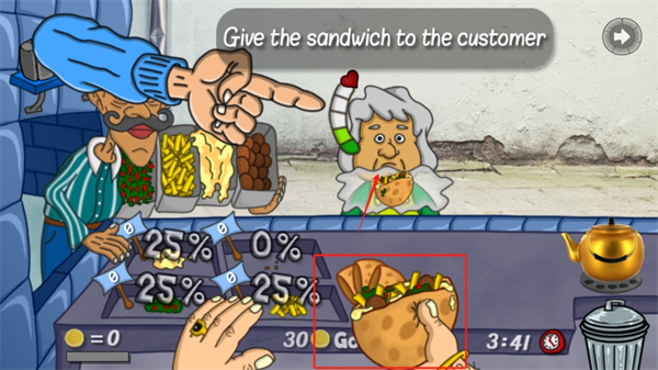 2、每位顾客对三明治的配方要求各不相同,必须严格按照订单准确放置对应食材,容错率低,考验专注力。