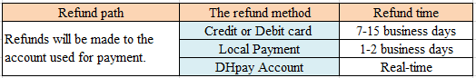 ? 退得清:DHpay账户暂不支持退款入账,仅可用于奖励金、运费补偿等特殊返还场景。