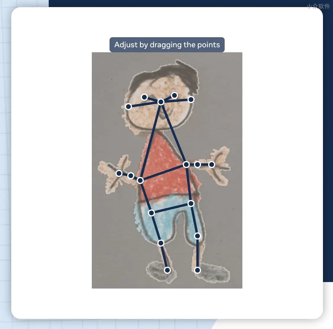 animateddrawings手机版——让静态涂鸦“活”起来的智能动画创作工具!无需专业基础,只需轻点标记关键动作点,即可将手绘草图、简笔人物或创意涂鸦一键转化为流畅自然的动态小动画。内置丰富人体动作模型与灵活画布系统,真正实现“所画即所动”,是插画师、教师、学生及动画爱好者的高效灵感加速器。