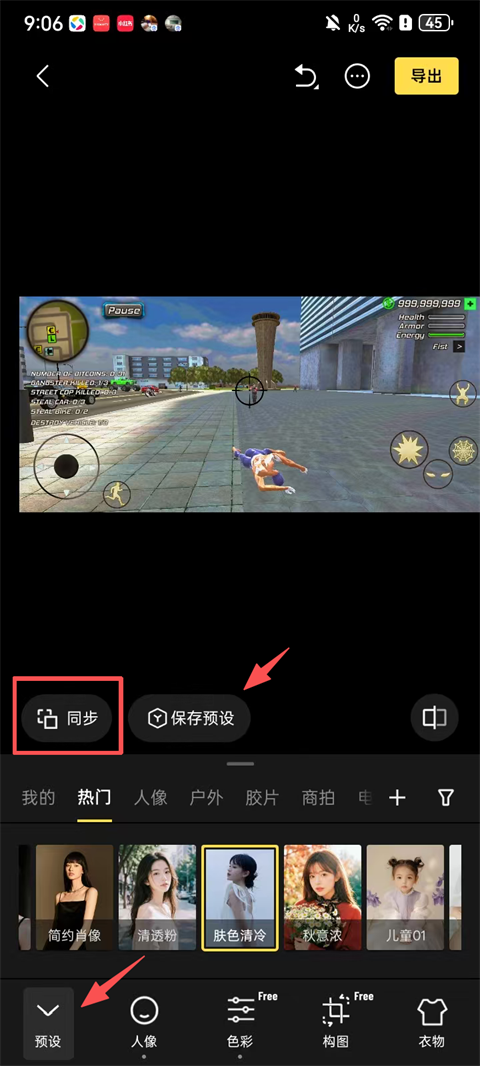 选择【预设】模块,应用匹配风格的AI调色方案;保存自定义参数后,勾选目标图片组,点击【同步】——所有照片即刻获得统一专业级影调,误差趋近于零。