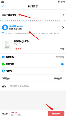 4. 选择地址、填写用药人信息 → 提交订单并完成支付 → 静待药品闪电送达
