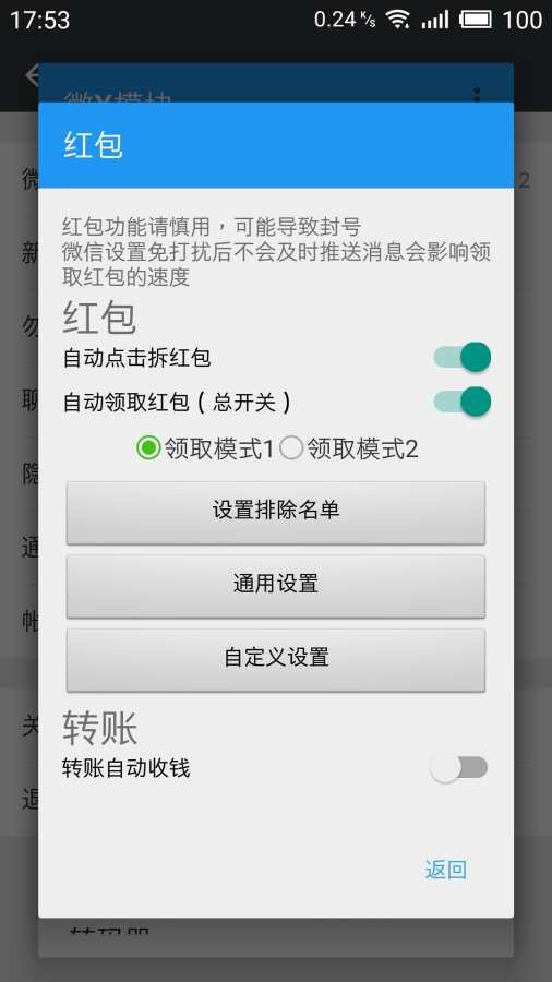 模块采用模块化功能架构,所有能力均支持独立开关与细粒度配置。例如:可单独启用“防撤回”但关闭“红包提醒”,或仅对指定群组开启“自动回复”。同时提供操作日志追踪、功能使用统计、热更新检测等辅助机制,兼顾安全性与可控性,让每一次微信使用都更随心、更高效、更安心。